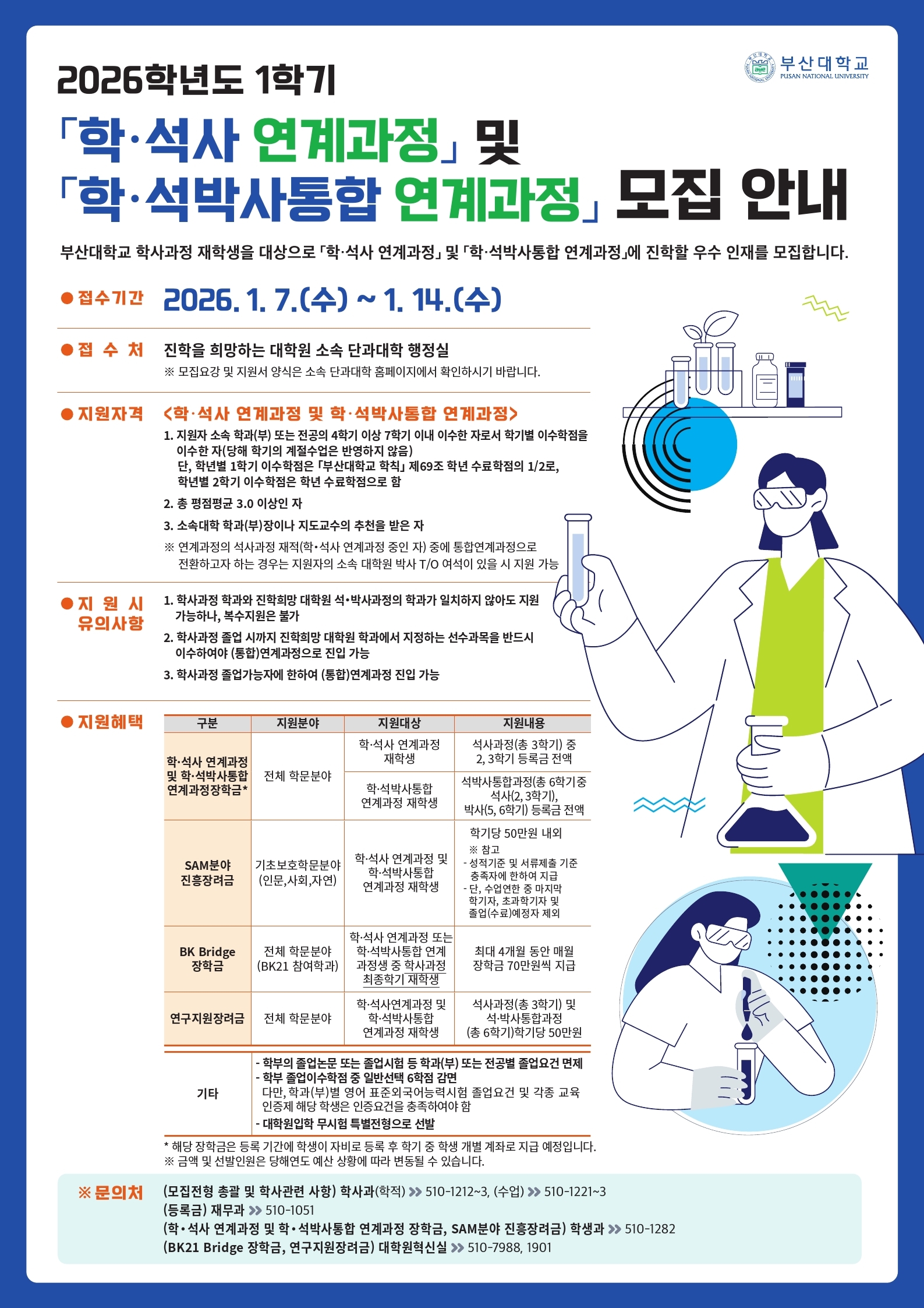 2026학년도 1학기 「학·석(박)사 (통합)연계과정」모집 안내