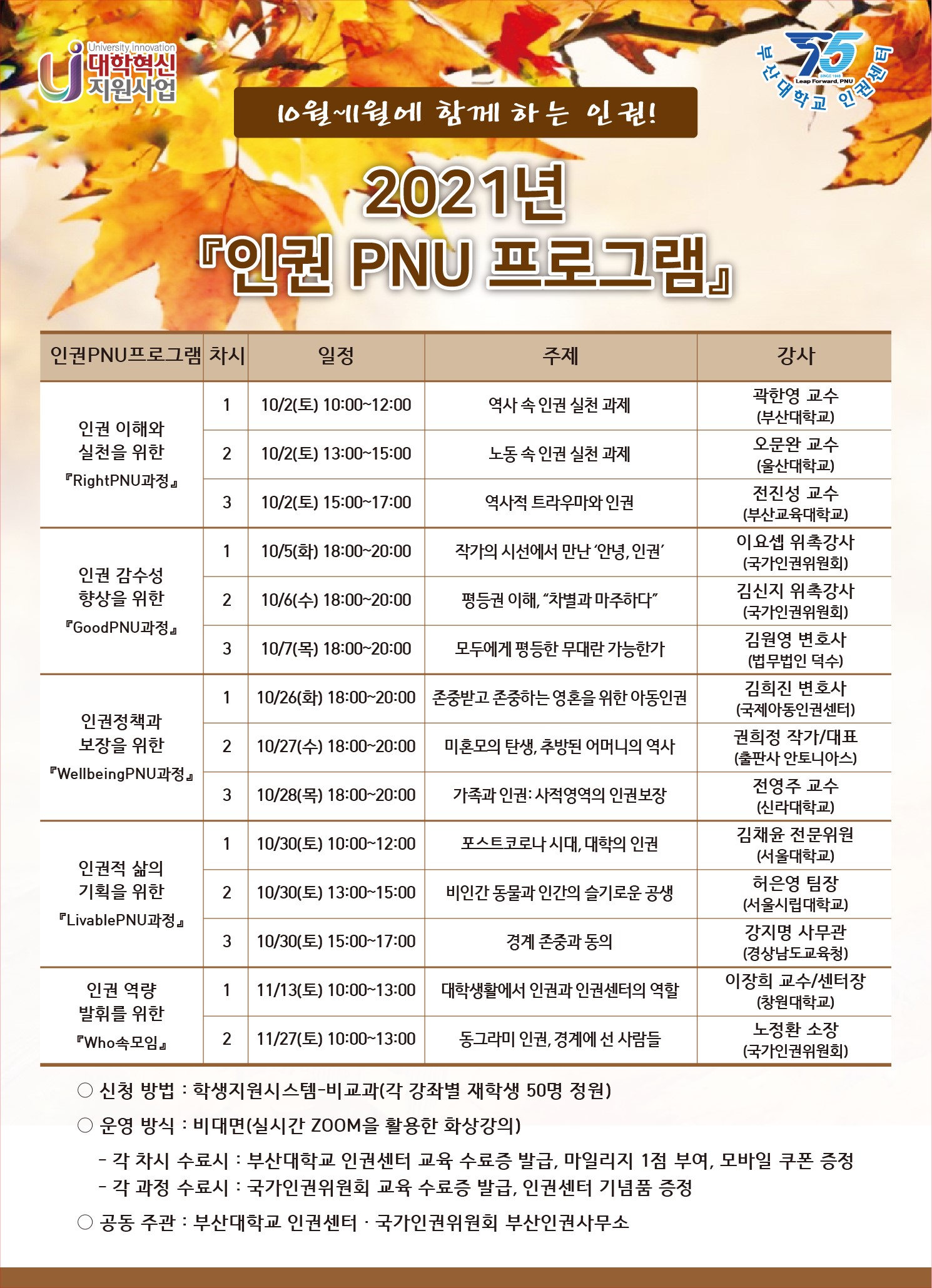 붙임 : 『2021년 인권PNU프로그램』 포스터 1부. 끝.