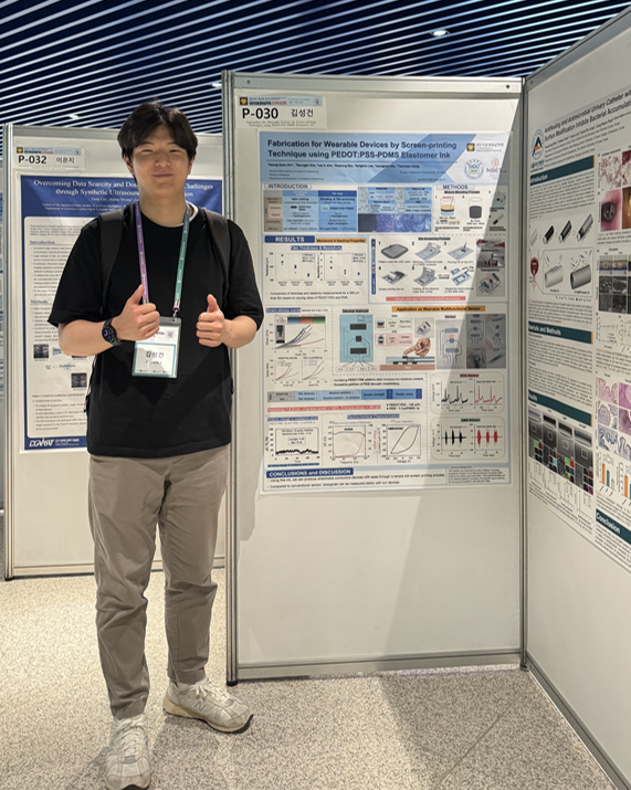 유세영 학생은 "Laser-Induced Graphene Based on Liquid Crystal Polymer for Wearable and Implantable Neural Interfaces" 라는 논문을, 이상민 학생은 "Modeling of Electrical Properties of Liquid Metal-Based Wearable Sensors using FEA Simulation and Analytic Methods"을 주제로 논문을 발표했습니다.