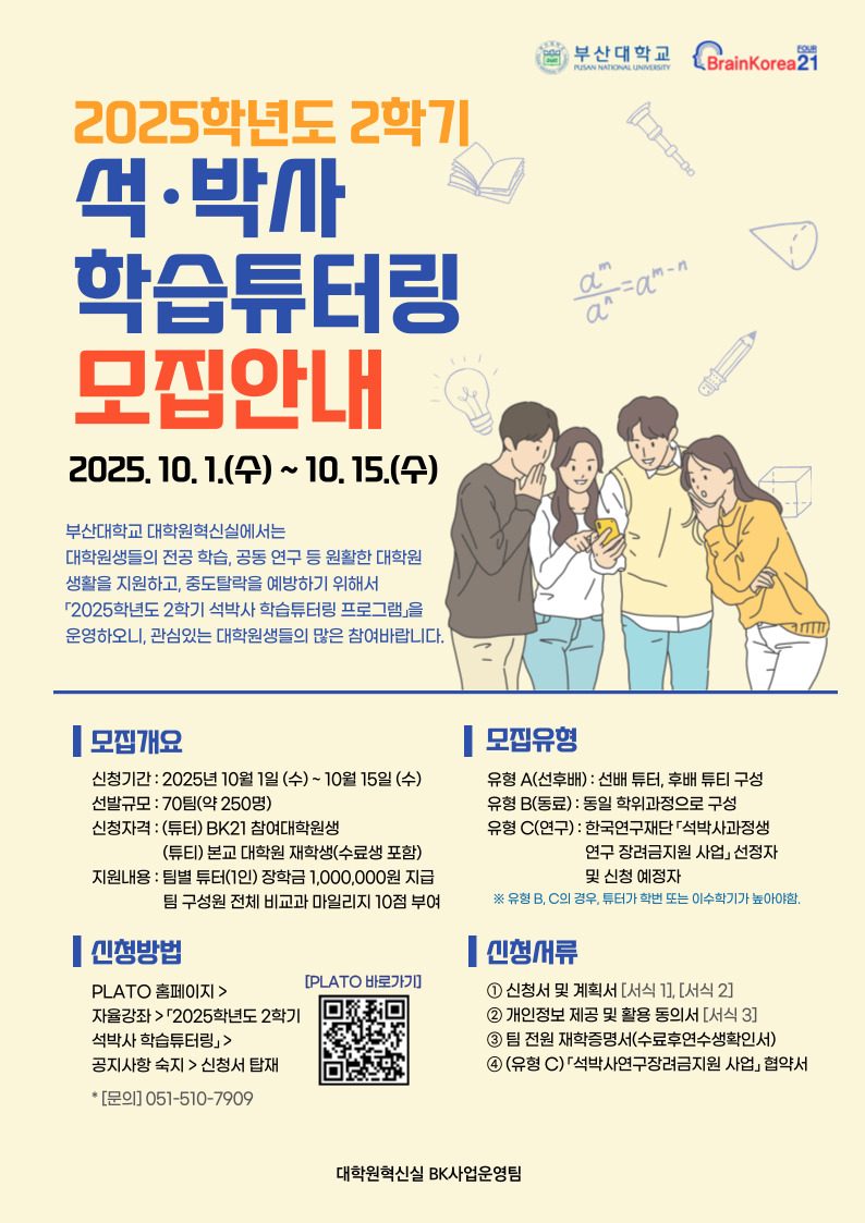 [BK21 대학원혁신] 「2025학년도 2학기 석·박사 학습튜터링」 운영 안내