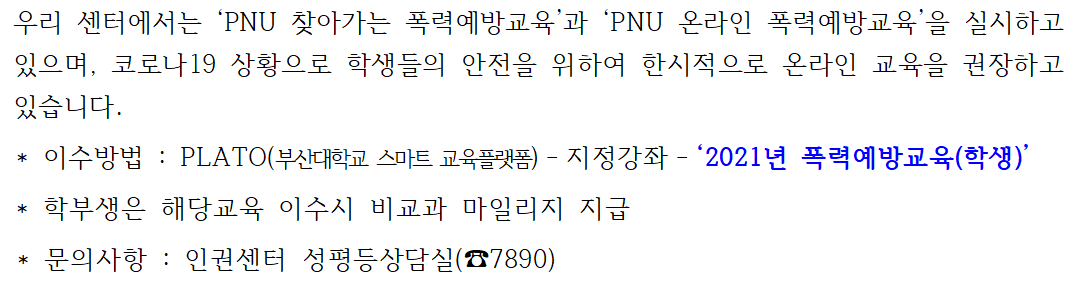 [인권센터] 2021년 학생대상 '폭력예방교육' 이수 안내