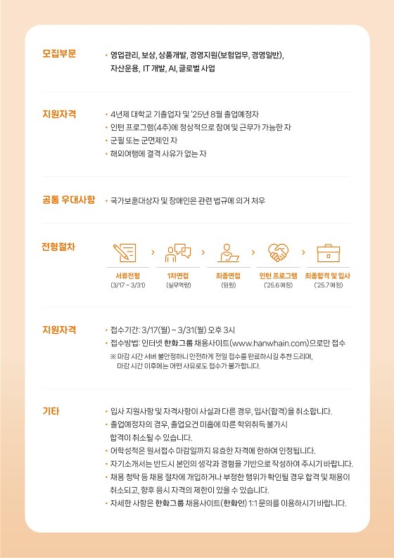 한화손해보험 2025 상반기 채용상담회 안내