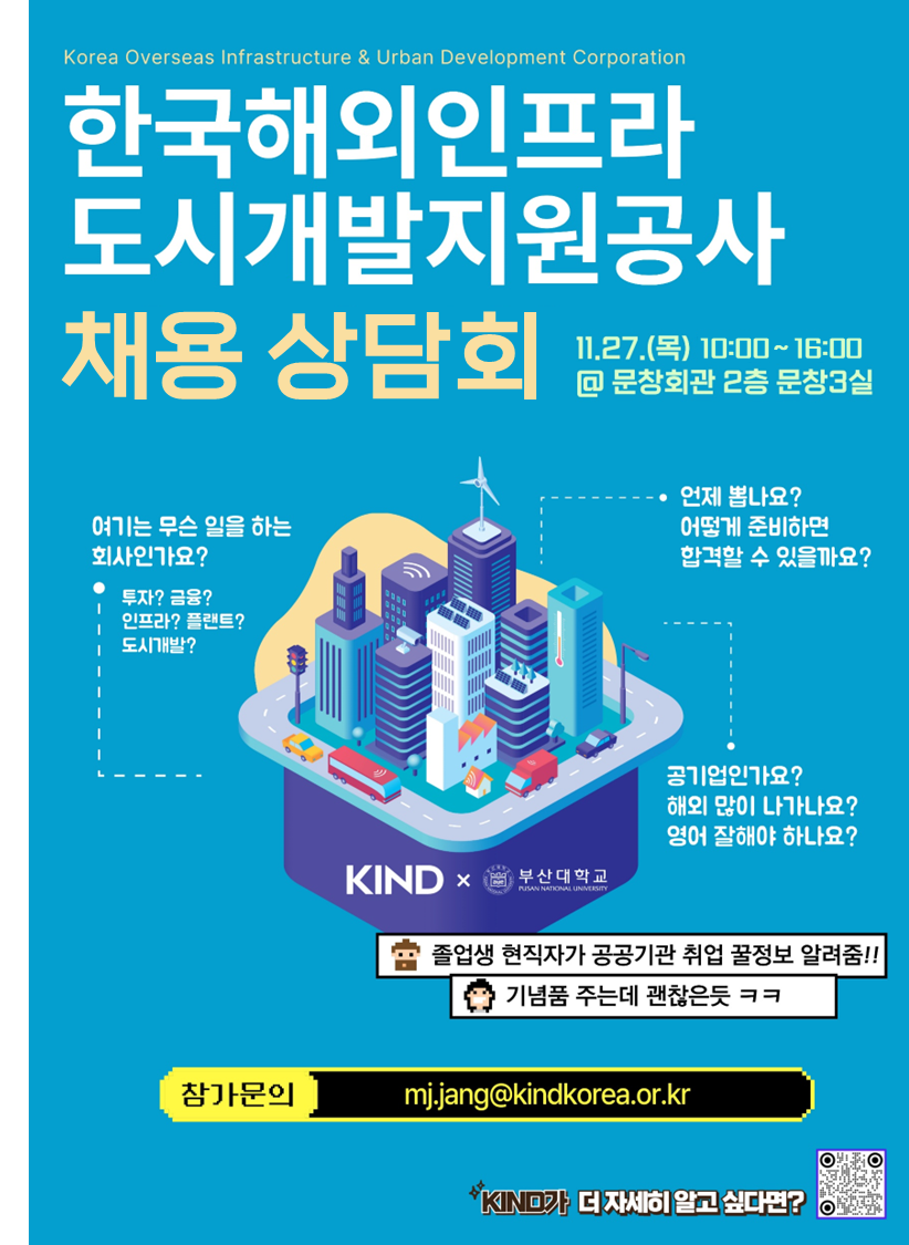 한국해외인프라도시개발지원공사(KIND) 2025 하반기 채용상담회 안내(11/27/목)