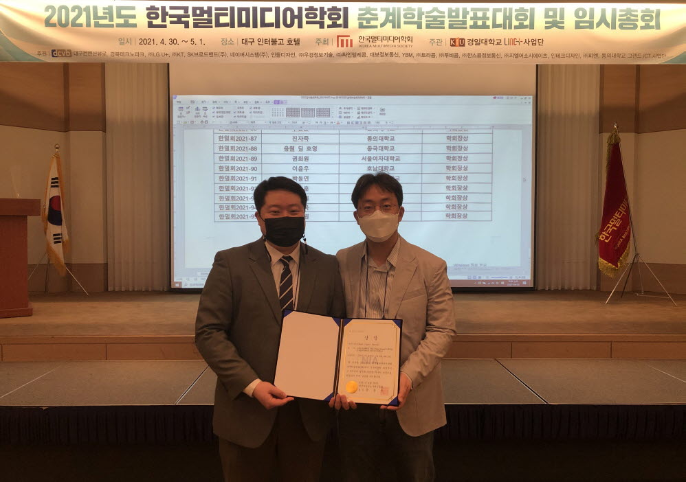 노대일(정보융합공학과 AI전공, 석사과정) 2021년도 한국멀티미디어학회 춘계학술발표대회에서 우수논문상 수상