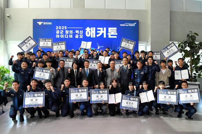 공군은 5일 서울 서초구 AI 허브에서 이양수(군무이사관) 공군항공우주전투발전단장 주관으로 제7회 공군 창의·혁신 아이디어 공모 해커톤 시상식을 개최했습니다. 지난 3월부터 아이디어 공모를 시작한 올해 대회에는 총 297팀 700여 명의 국민·장병·군무원이 참가했습니다. 시상식에는 강옥현 서울시 디지털도시국장, 유일광 IBK기업은행 부행장, 박대희 대전창조경제혁신센터 대표이사, 김영수 한국청년기업가정신재단 사무총장, 신세범 KT 공공고객본부 상무 등 대회 공동주관기관장 및 후원기관 업무담당자들이 참석했습니다.